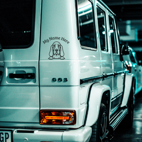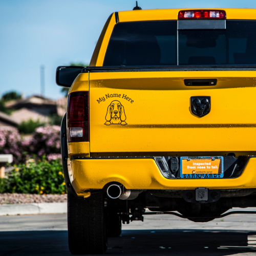 Basset Hound Sticker with Name | Personalized Vinyl Dog Decal for Car, Laptop or Window